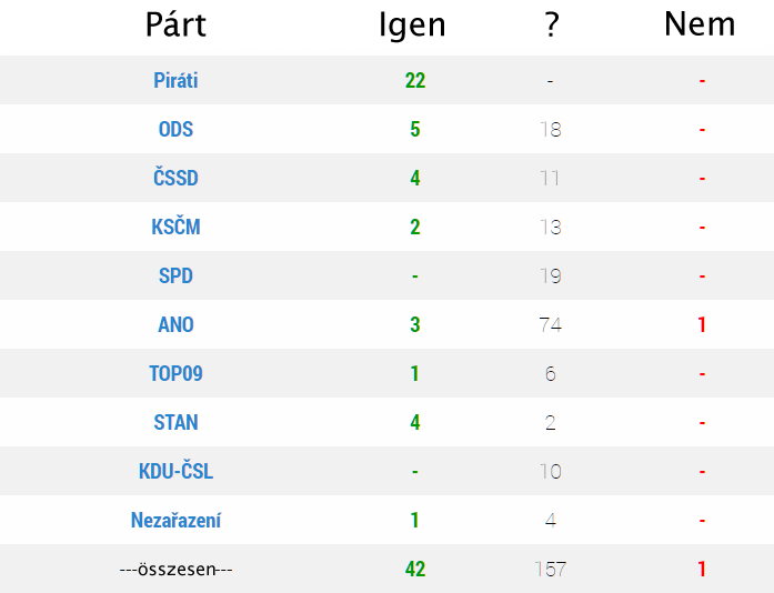 A Kalózpárt módosítása, amelyet a képviselők egy csoportja már 2018 novemberében nyújtott be a képviselőház felé, a kamara elektronikus rendszerében a parlament 331. számú irományaként lett eltárolva, további érdeklődés nélkül, ez év májusáig, amikor is Tomáš Vymazal (Kalózpárt) és Patrik Nacher (ANO) kezdeményezésének köszönhetően sikerült átjuttatni a tárgyalást az első olvasatig. A Legalizace.cz egyesület, amely közreműködött azon törvénymódosításon, amely lehetővé teszi a felnőttek számára, hogy otthonukban személyes használatra, büntetőjogi kockázat nélkül kis mennyiségű kannabiszt termeszthessenek, feldolgozhassanak és tarthassanak, üdvözli és támogatja a képviselők érdeklődését.