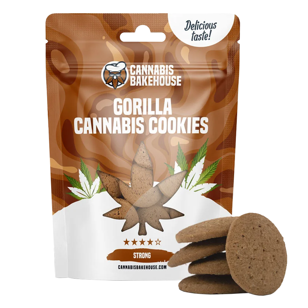 A Cannabis Bakehouse Gorilla Cannabis Cookies egy karakteres, erőteljes aromavilágú sütemény, amely a híres Gorilla kannabisz fajta terpénolajával készül. Minden falatban találkozik a gazdag csokoládés alapíz a földes, enyhén fűszeres és gyümölcsös jegyekkel – így születik meg egy igazán markáns, mégis harmonikus élmény.