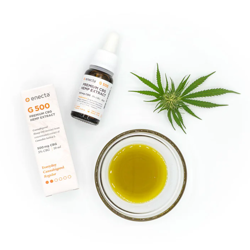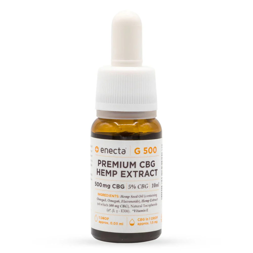Az Enecta G500 5% CBG Prémium Kivonat a legújabb generációs, tudományosan vizsgált cannabigerol (CBG) olaj, amelyet a legmagasabb minőségi előírásoknak megfelelően, organikus olasz kenderből állítanak elő. A CBG-t gyakran nevezik a „kannabinoidok anyjának”, mivel ez az a fitokannabinoid, amelyből a kender növekedése során a többi aktív vegyület – például a CBD és a THC – is kialakul. A CBG nem pszichoaktív, ugyanakkor számos kutatás bizonyította gyulladáscsökkentő, idegvédő, antibakteriális és hangulatjavító hatásait.