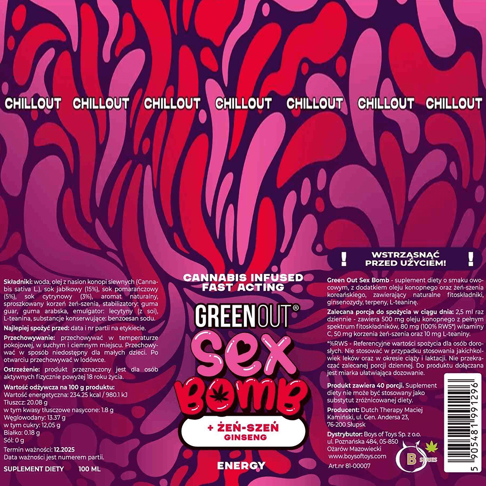 Fedezd fel a Green Out® “Sex Bomb” + Ginseng erejét, egy forradalmi kenderkivonatot, amelyet kifejezetten a szexuális élet javítására fejlesztettek ki! Ez a 100%-ban természetes és legális formula a természet legjobb összetevőit ötvözi, hogy fokozza a libidót, növelje az energiaszintet és segítsen elérni az intenzívebb érzékiséget.