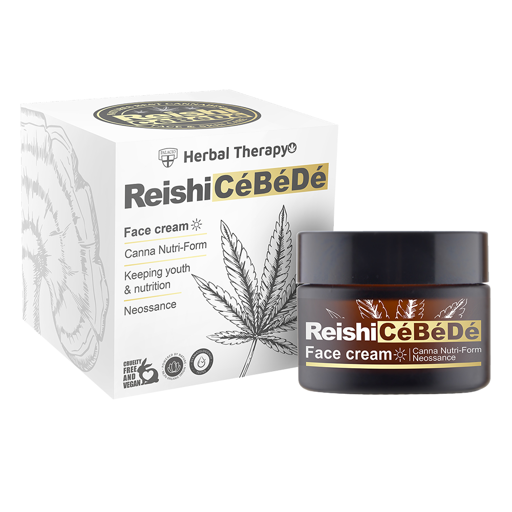 A Palacio Reishi CéBéDé Nappali Arckrém (50 ml) egyedülállóan ötvözi a tradicionális gombaterápia és a modern kannabiszkozmetika erejét. A Canna Nutri-Form™ aktív összetevőkomplex révén – amely Reishi gombából és kenderkivonatból áll – segít lelassítani a bőr öregedését, támogatja a sejtek regenerációját, és visszaadja az arcbőr természetes rugalmasságát.